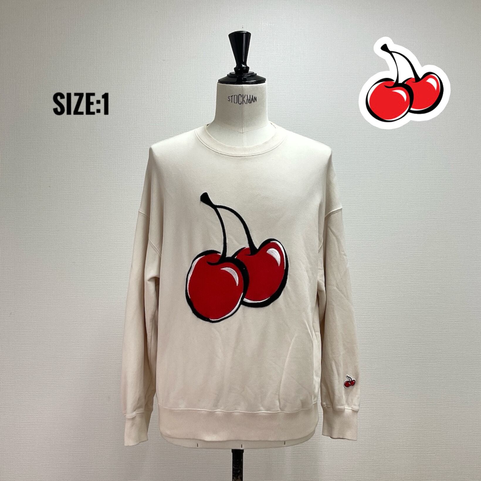 ブランドの象徴である大きなチェリープリントがフロントに施され、袖口にはワンポイント刺繍入り。