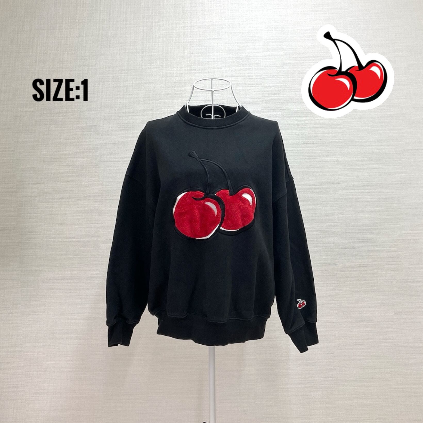 フロントのビッグチェリーロゴがポイントで、シンプルながら韓国っぽいかわいさとトレンド感が詰まった1枚です。